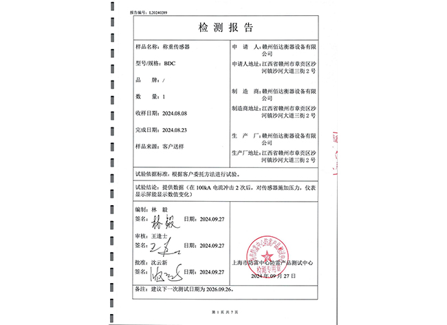 称重传感器检测报告